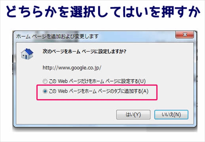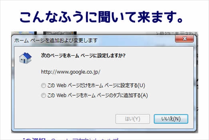 要するにGoogleのトップページをホームページにするかどうかです。